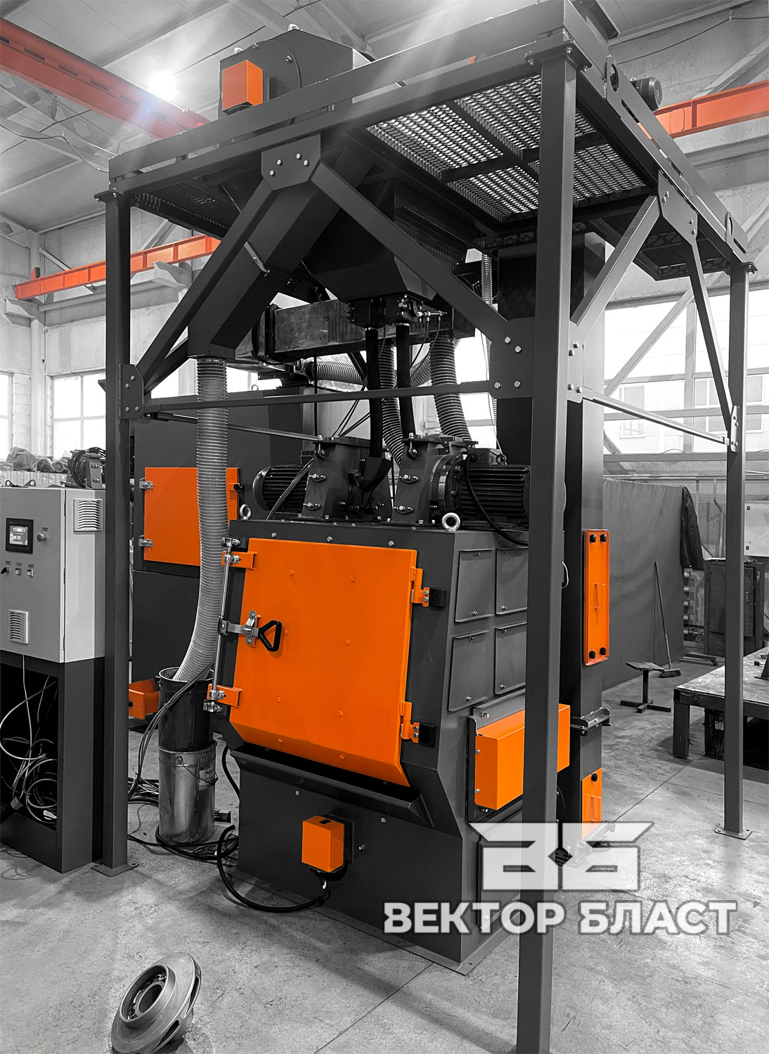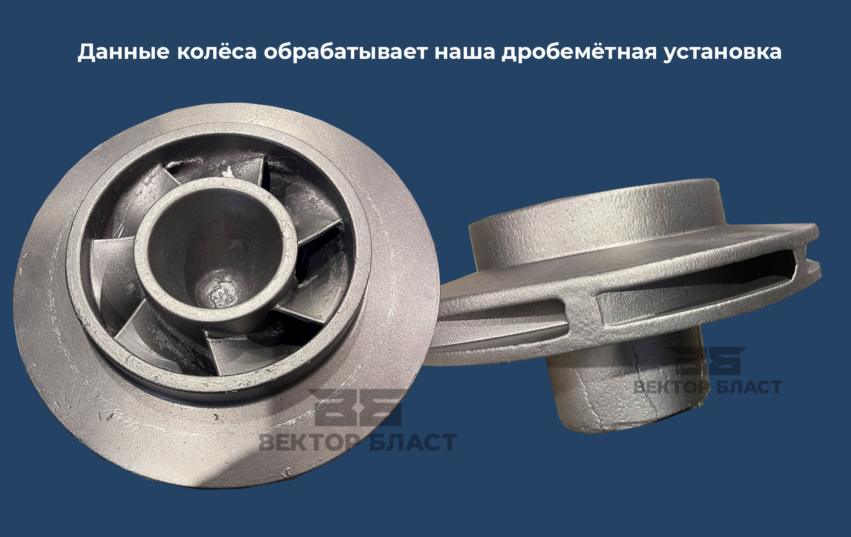 Нашей компанией Вектор Бласт разработана и реализована специальная дробеметная установка для очистки рабочих колес нефтяных насосов от литейной корки после литья. Данные колеса большинство компаний отливает по выплавляемым моделям, при этом на заготовке после литья остается большой слой литой корки, который сложно убрать. Процесс очистки занимал очень много времени и затрат.