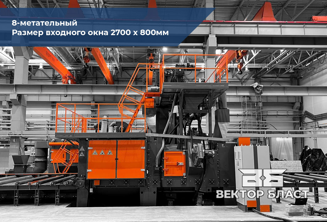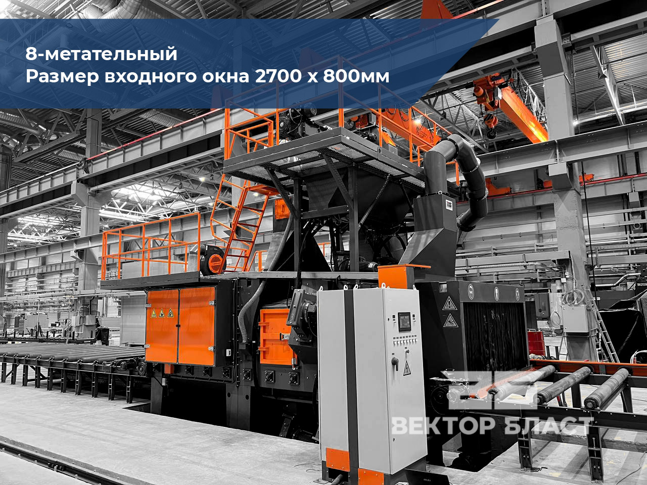 Дробемёт проходной двухметательный для очистки листового проката и профильных заготовок.